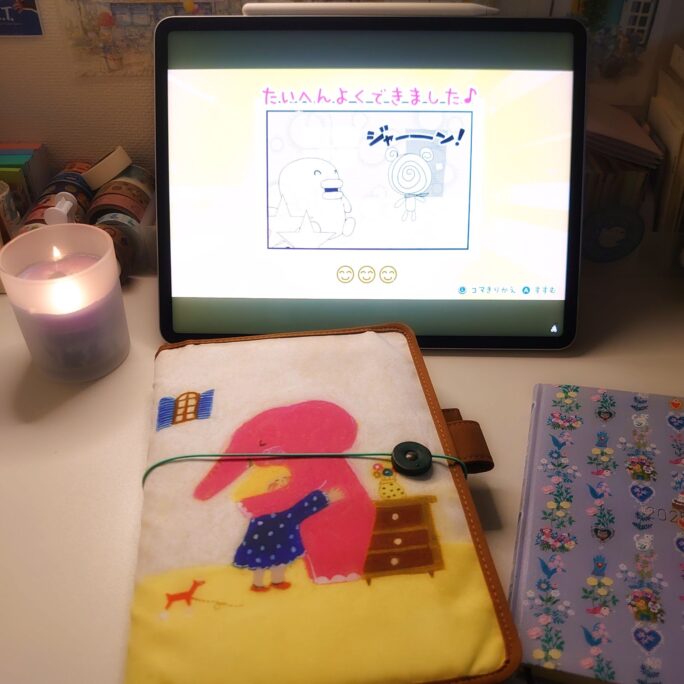ドコムッチ見ながら手帳タイム。ドコムスチャンネルからしか得られない癒しがある。