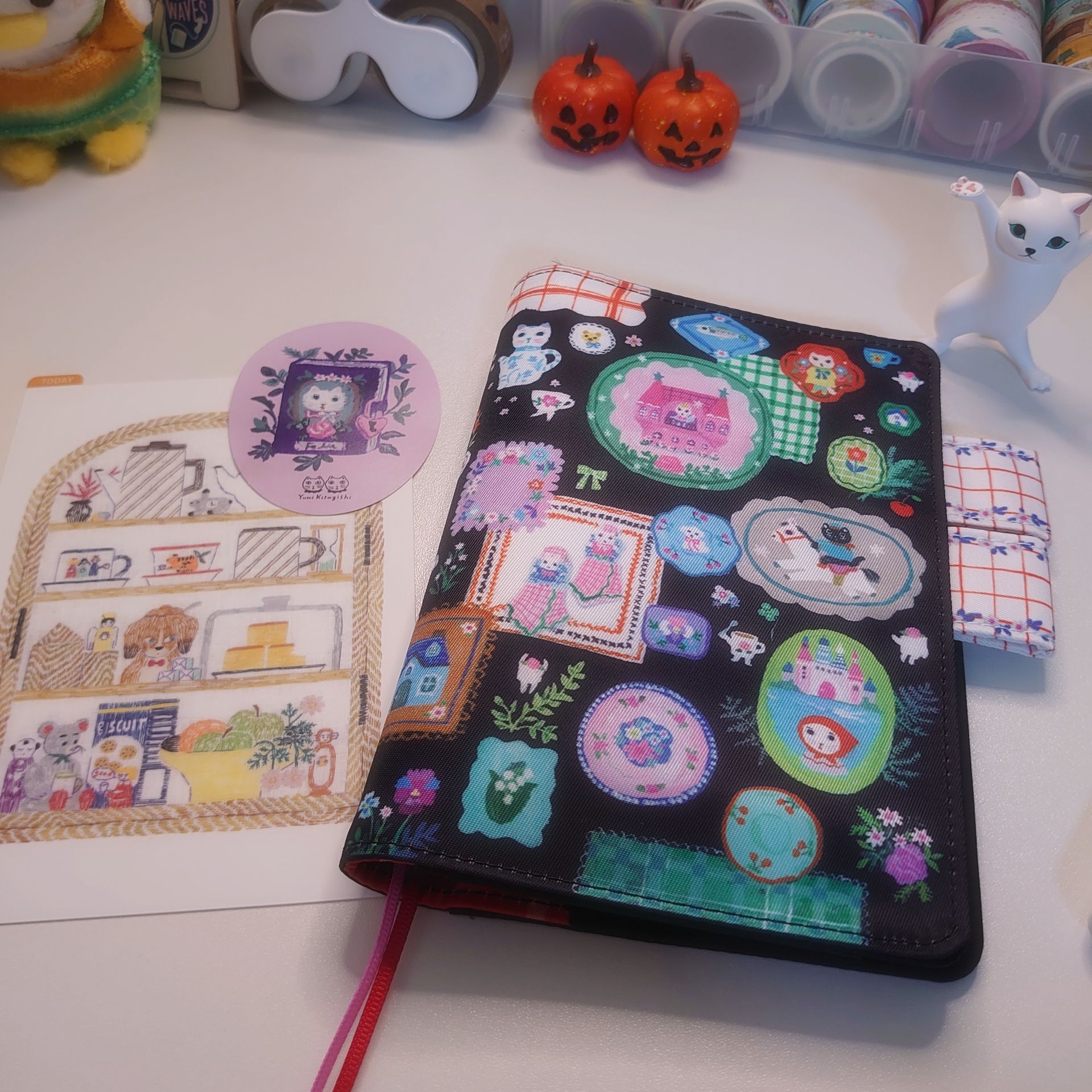 北岸由美さんデザインのオリジナルカバー、しろねことテーブルデコレーション🐈奥見伊代さんデザインの下敷きHAPPY TEA TIME。可愛すぎてずっと見惚れています。。