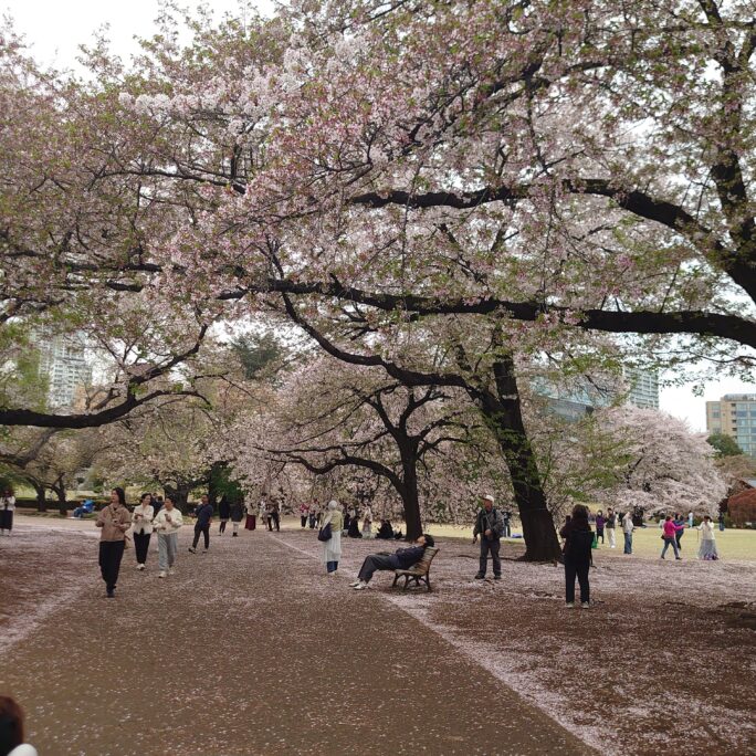 この日は、14時ごろ新宿御苑に行った。見頃の桜もあれば、散っている桜の木もあった。ベンチに座りたかったが、午前中はパラパラと雨が降っていたため濡れていて座れなかった☔️一葉(イチョウ)という桜の木が可愛かった。ピンクのふっくらとした桜でみんな夢中で見上げていた。見上げていた桜たちが散ってしまい桜の絨毯になっていたのも綺麗。どこを切り取っても素敵。本当にあっという間に過ぎ去ってしまうな、桜シーズン。そして緑シーズンが到来しますね。