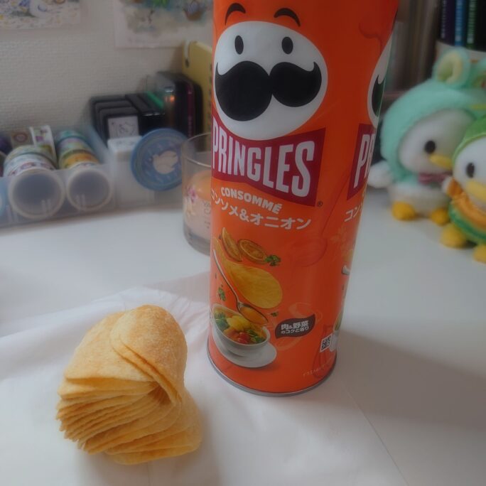 ど深夜に、友達からもらったお菓子とチップス食べちゃう